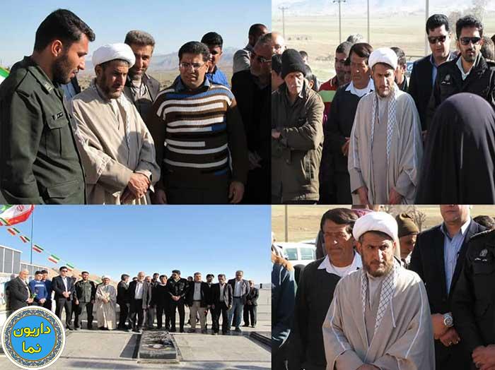 در ششمین روز از دهه فجر ۴۱ سالگی انقلاب؛ قبور مطهر شهدای منطقه داریون و دوشهید گمنام این دیار با حضور جمعی از مردم و مسئولین از جمله امام جمعه منطقه داریون، گلباران شد.