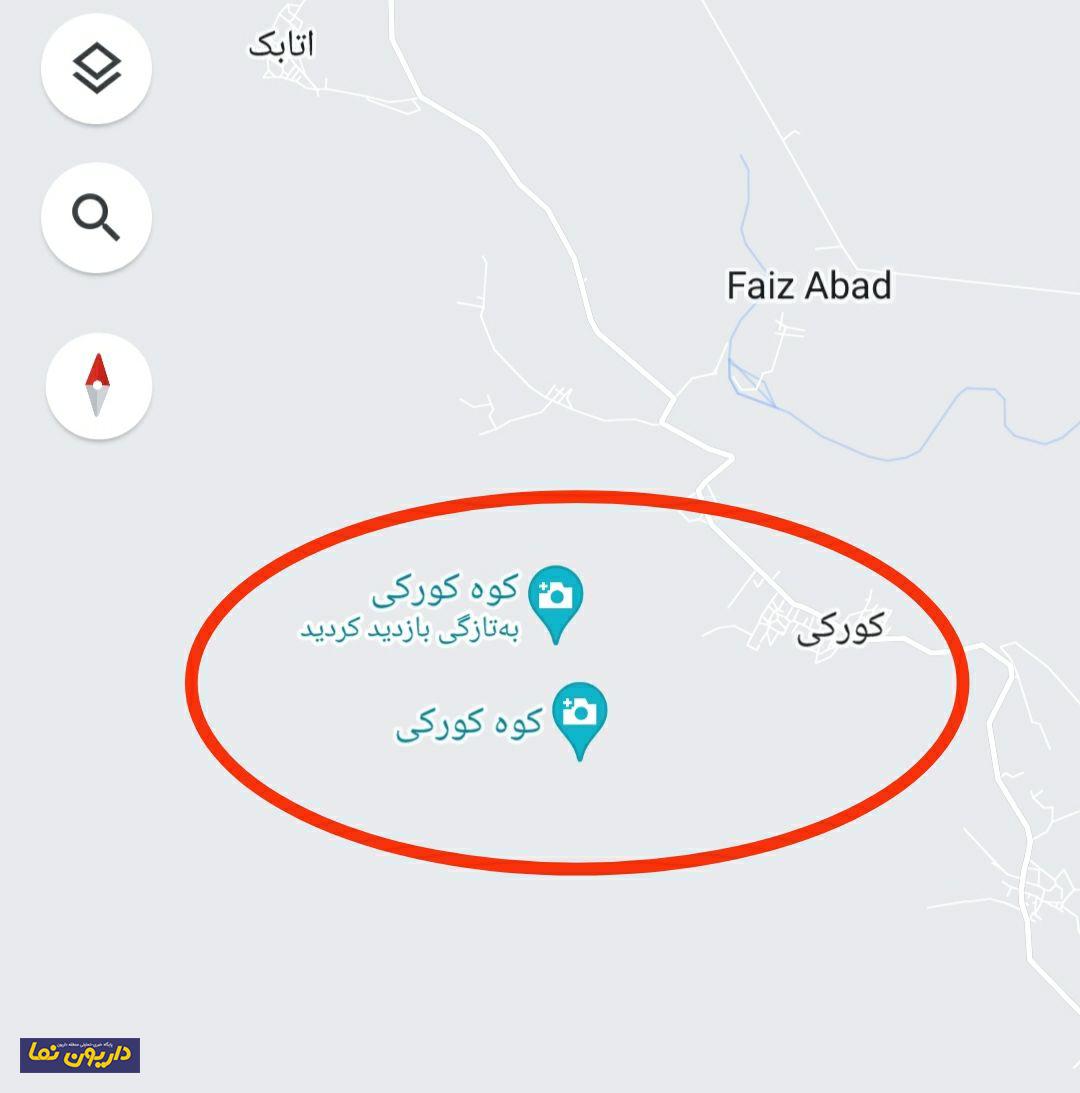 نام رشته کوه های زاگرس جنوبی واقع در منطقه داریون در نقشه گوگل مپ از گدوان به کورکی تغییر کرده است.