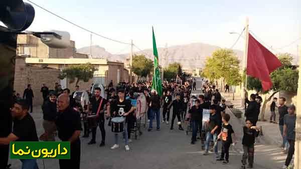 عزاداران حسینی در بلوار کشاورز شهر داریون به عزاداری پرداختند . هیات جانثاران حضرت امام حسین علیه السلام و هیئت نوگلان حسینی در ورودی شهر به طرز زیبا و منسجمی به عزاداری پرداختند .