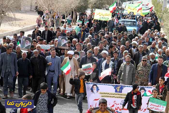 مردم منطقه داریون، هم قدم با سایر مردم ایران اسلامی در چهل و پنجمین سالگرد پیروزی انقلاب اسلامی با شعار استکبار و ظلم ستیزی راهپیمایی کردند.