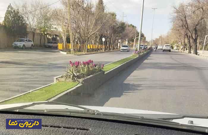 وی نوشته:دیروز در حال گذر در سطح شیراز این بلوار را دیدم که به جای استفاده از چمن طبیعی با چمن مصنوعی فرش شده بود.