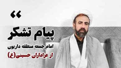 پیام تشکر امام جمعه منطقه داریون از عزاداران حسینی(ع)