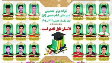 نفرات برتر امتحانات نوبت اول دبیرستان امام حسین(ع) داریون(متوسطه دوره دوم)در سال تحصیلی ۱۴۰۳_۱۴۰۲ معرفی شدند.