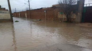 آبگرفتگی یکی از خیابان های داریون بر اثر بارندگی امروز 6 فروردین